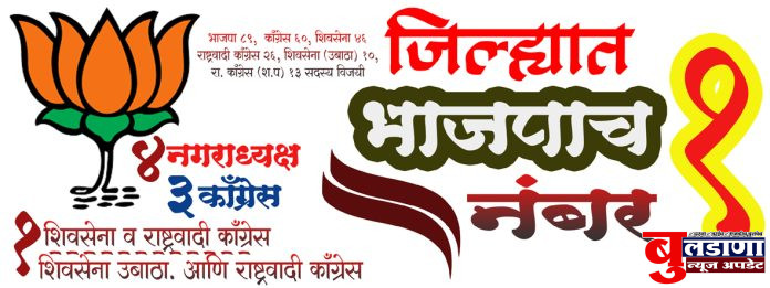 बुलढाणा -जिल्ह्यातील 11 नगरपरिषदांच्या अध्यक्षपद व सदस्यपद निवडणुकांचे निकाल आज रविवार 21 डिसेंबर रोजी जाहिर झाले. या निवडणुकांमध्ये विविध राजकीय पक्षांच्या उमेदवारांनी यश मिळवले आहे. अध्यक्षपदाच्या निवडणूकांमध्ये भारतीय जनता पार्टीने सर्वाधिक जागांवर विजय मिळवत आघाडी घेतली आहे.